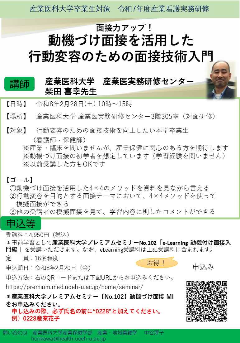 令和7年度 産業看護実務研修のお知らせ